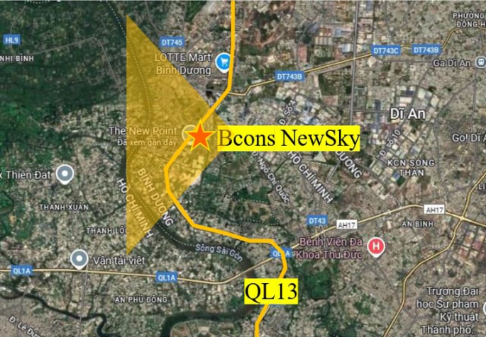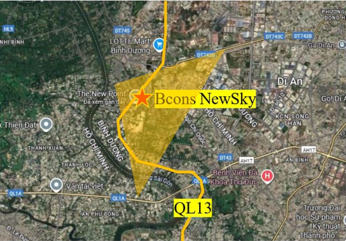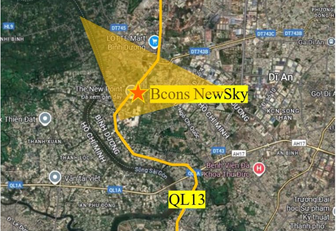 Với vị trí vàng hiếm có khi nằm trực tiếp trên Quốc lộ 13 – trục giao thương huyết mạch kết nối nhanh TP.HCM, Thủ Đức & Bình Dương (cũ). Bcons NewSky là dự án dành cho người tìm tổ ấm đúng nghĩa và những ai có tầm nhìn về một khu vực đang bứt tốc trở thành đô thị mới của TP.HCM