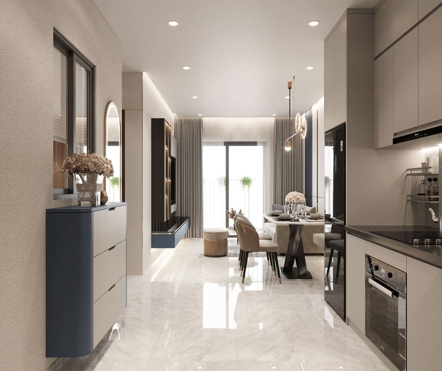 Hệ thống Shophouse thương mại khối đế: Đây là mảnh ghép hoàn hảo cho một cuộc sống tiện nghi tuyệt đối. Các căn shophouse quy tụ đầy đủ dịch vụ thiết yếu như siêu thị mini, cửa hàng tiện lợi 24/7, quán cà phê, nhà thuốc, tiệm giặt ủi… Mọi nhu cầu hàng ngày của cư dân đều được đáp ứng chỉ trong vài bước chân mà không cần phải di chuyển ra ngoài, giúp tiết kiệm thời gian và công sức.